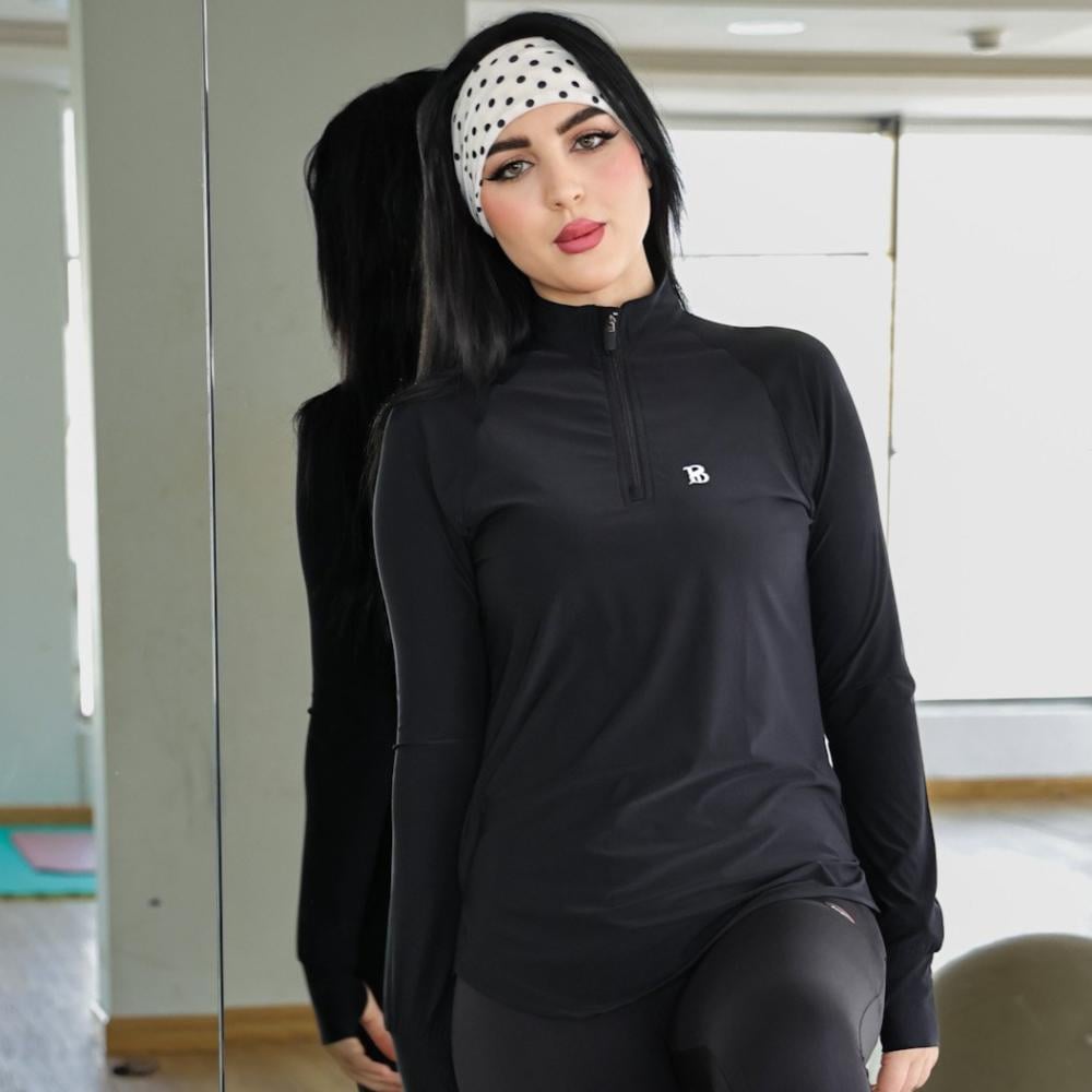 تيشرت رياضي لون اسود كم طويل