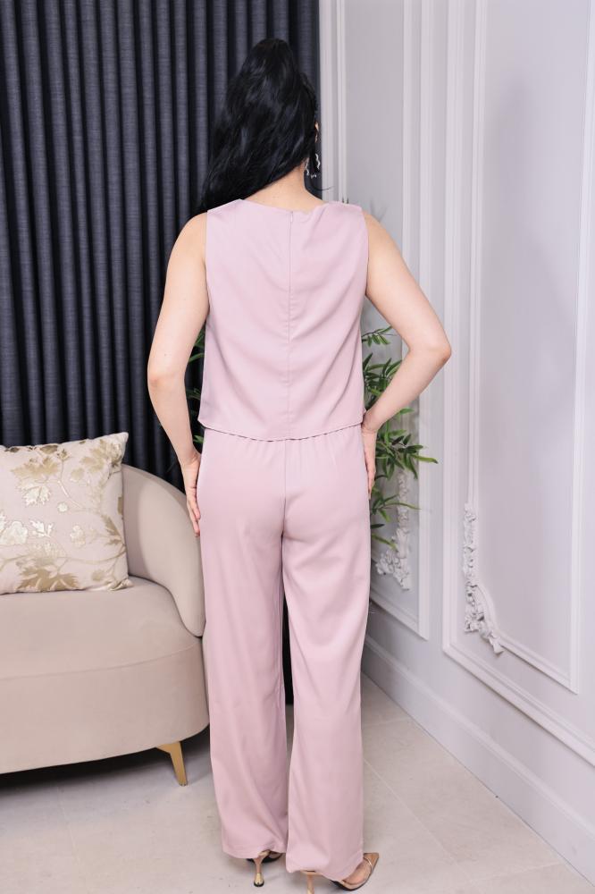 طقم أنيق من توب وبنطلون باللون الوردي