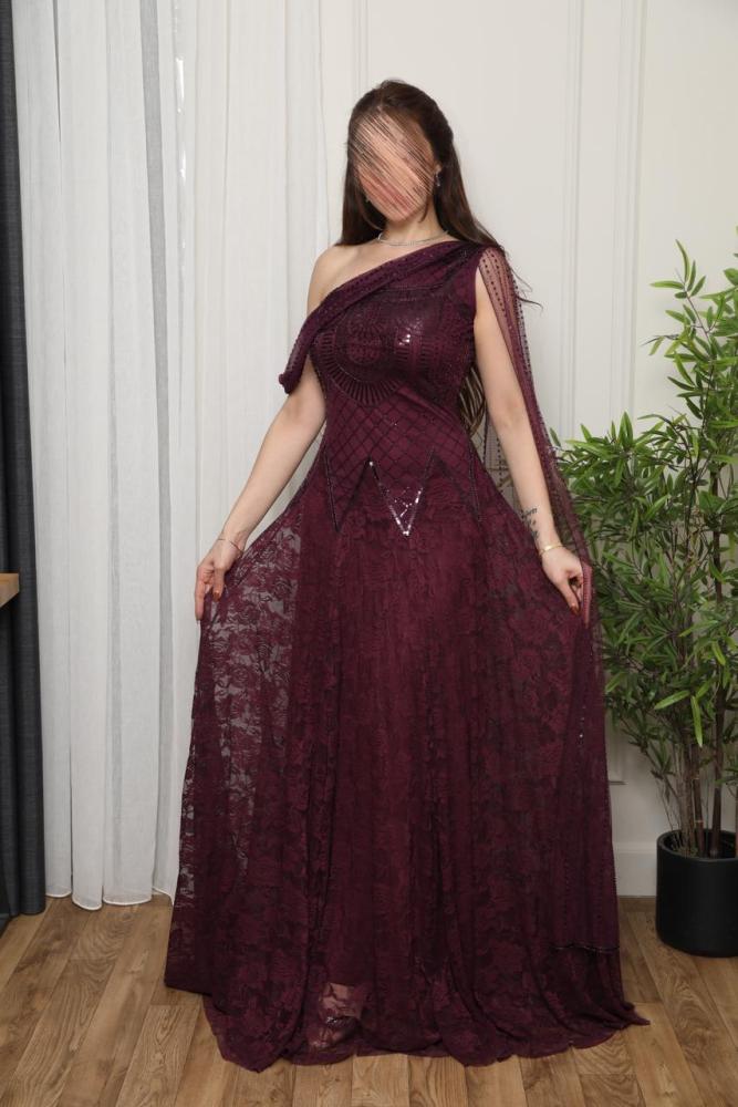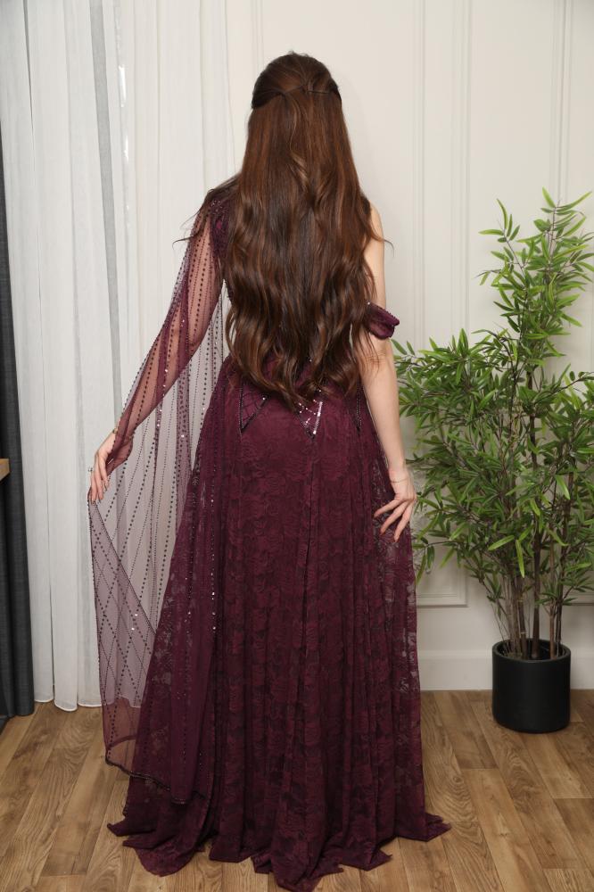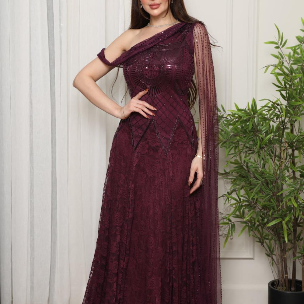 فستان سهرة عنابي باربي دانتيل