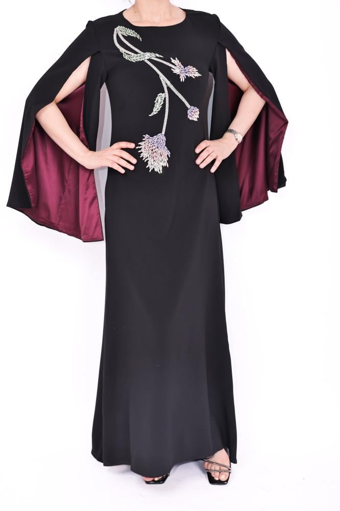 فستان سهرة أسود بلمسة ملكية فاخرة