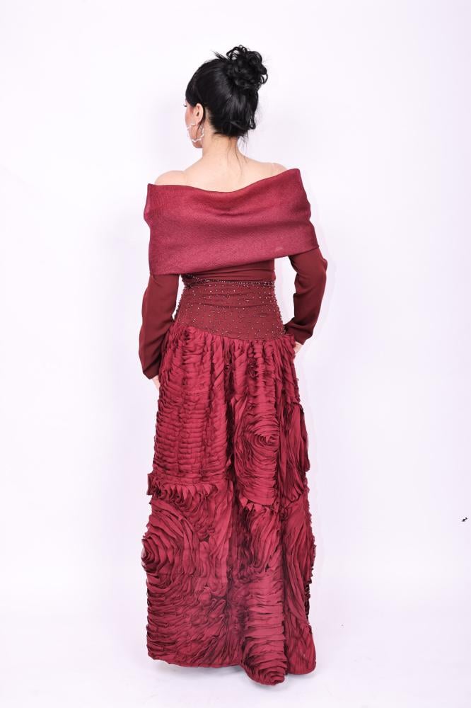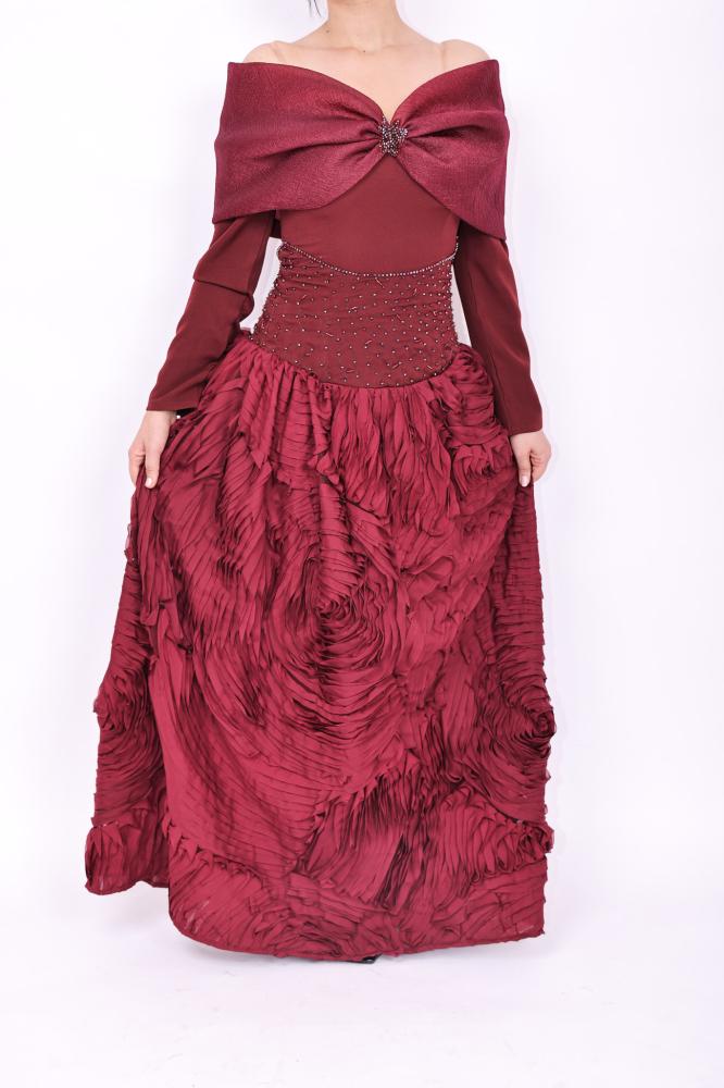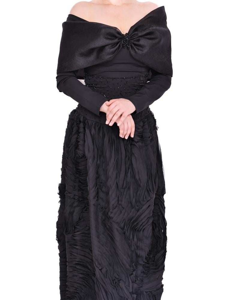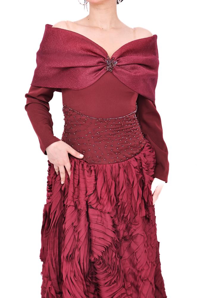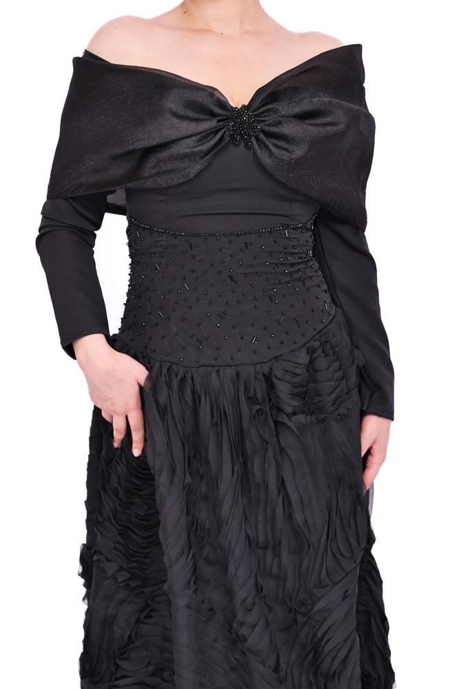 فستان سهرة أوف شولدر بتفاصيل فاخرة