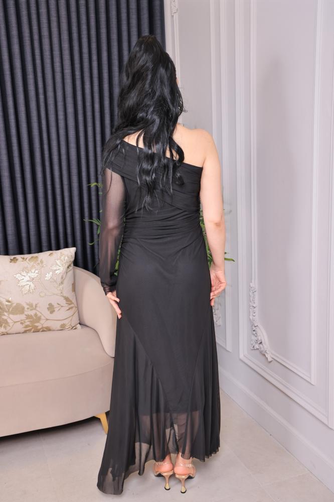 فستان طويل بتصميم أنيق يناسب السهرات والمناسبات الخاصة.