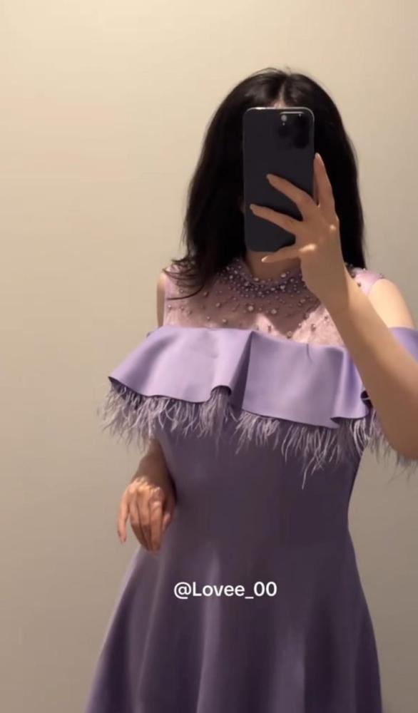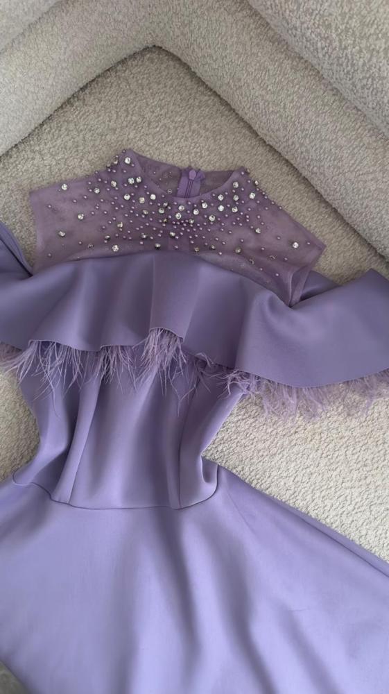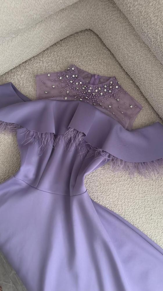 🔹 اللون: بنفسجي فاتح يضيف هدوء وأنوثة على الإطلالة