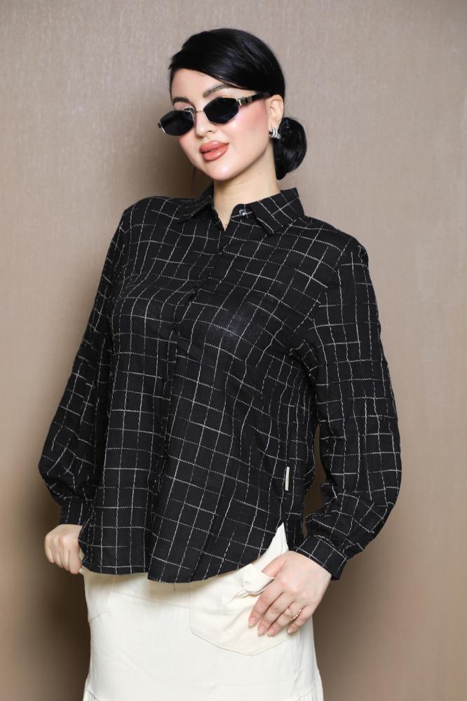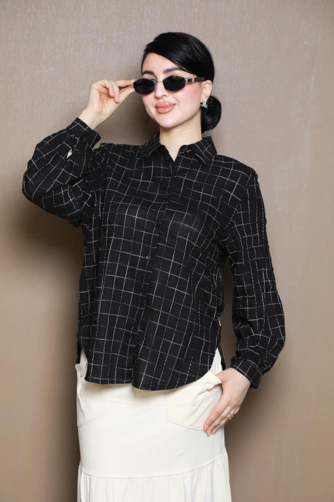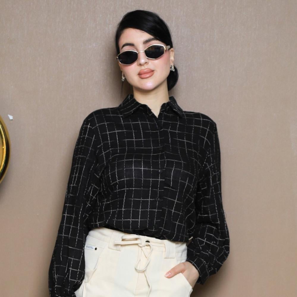 قميص اسود مقلم لون ذهبي