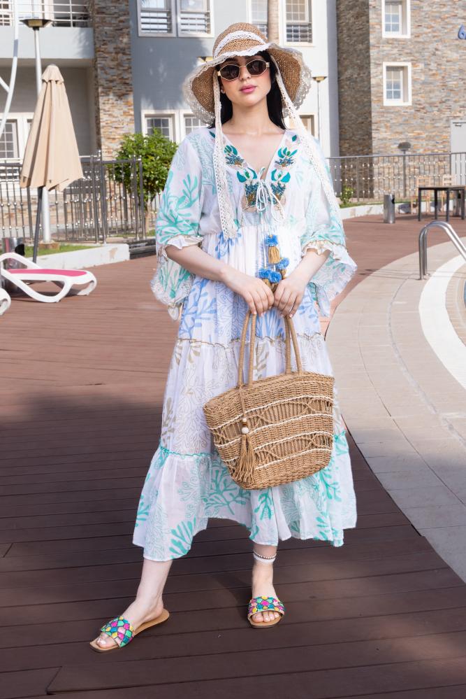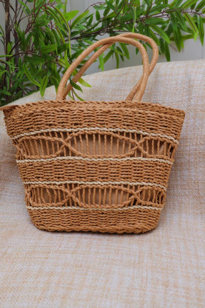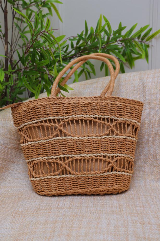 حقيبة شاطئية من الخيزران بتصميم بسيط وزخارف مميزة