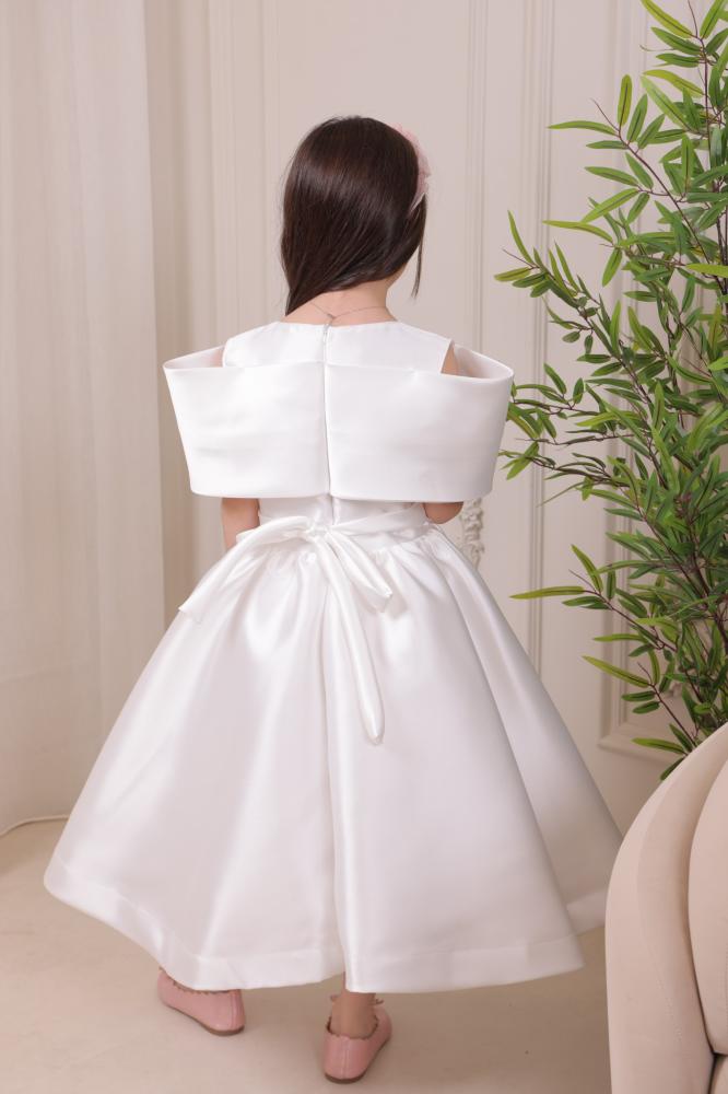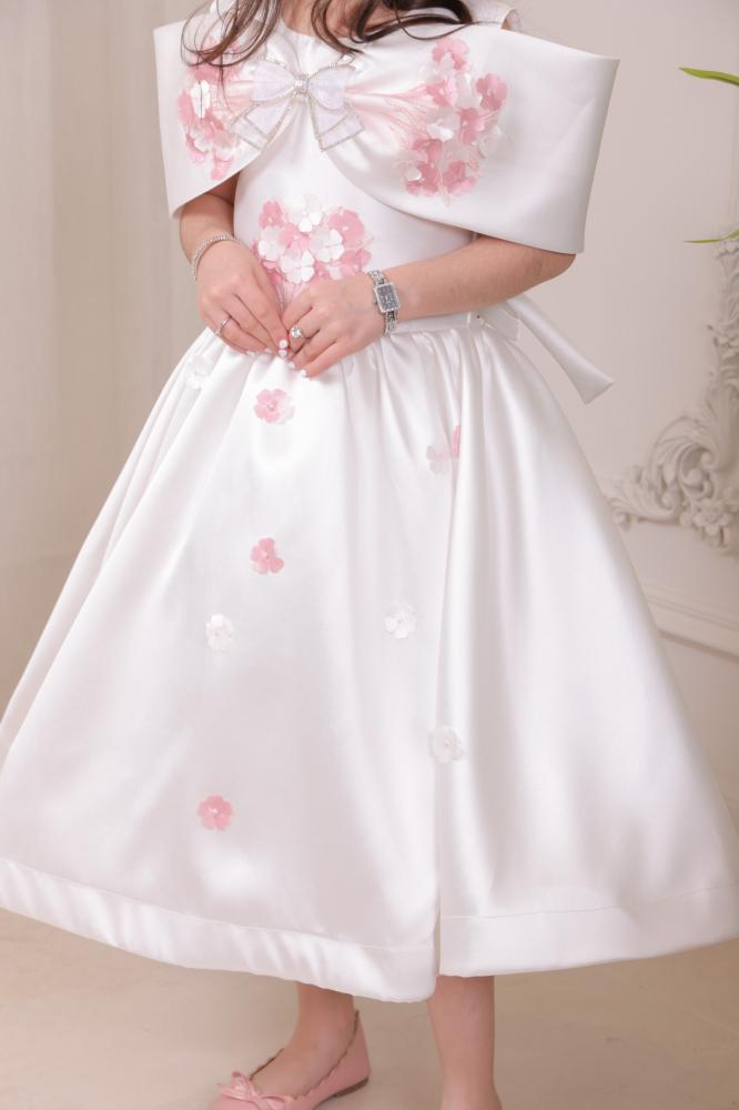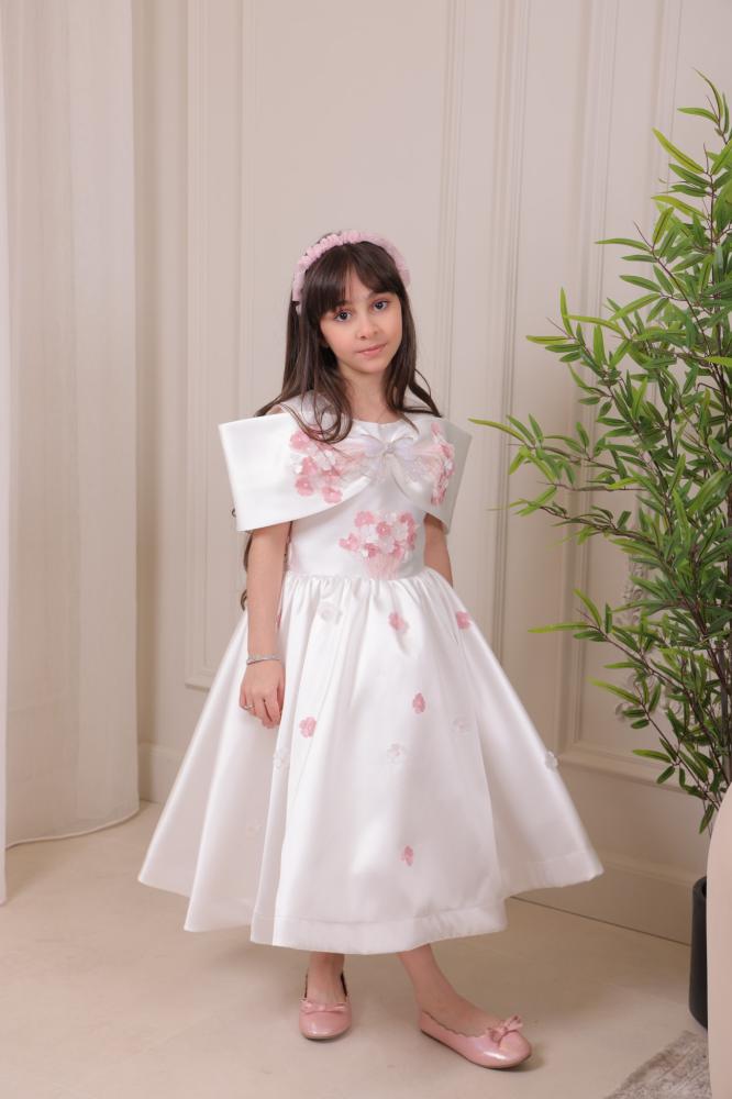 فستان بناتي أبيض أنيق مع تفاصيل زهرية ناعمة