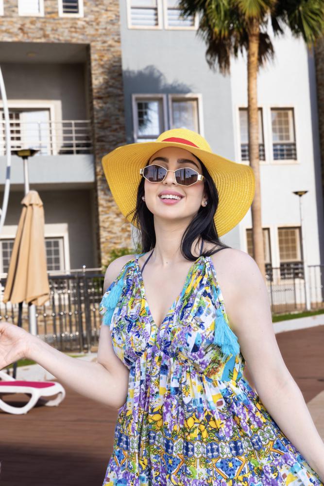 فستان صيفي طويل بتصميم ملون وزخارف استوائية